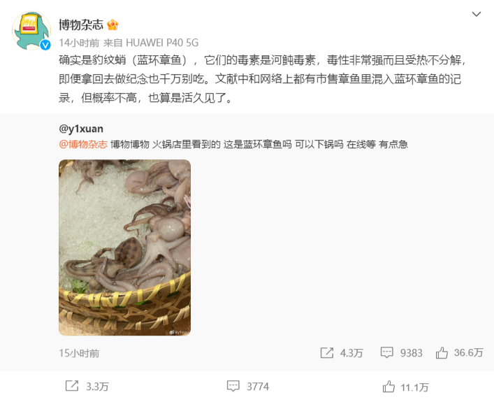 涮火锅发现蓝环章鱼?研究人员回应(蓝环章鱼事件)