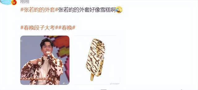 作为除了大合唱的第二个开场,大张伟和张若昀的节目当然是备受关注,两人也成功热闹开场。但是观众很快发现亮点,张若昀的外套好像某雪糕啊,不能说是毫不相干,但可以说是几乎同款了。